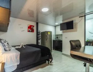- Servicios Agua caliente, Balcon, Baño privado, Camaras de vigilancia, Cocina, Estufa, Habitacion, Jabon de manos, Papel higienico, Netflix, Refrigerador, Sabanas, almohadas, cobijas, Seguridad, Televisor, Terraza, Utensilios de cocina (vasos, platos, cubierto), Wifi, Zona comun